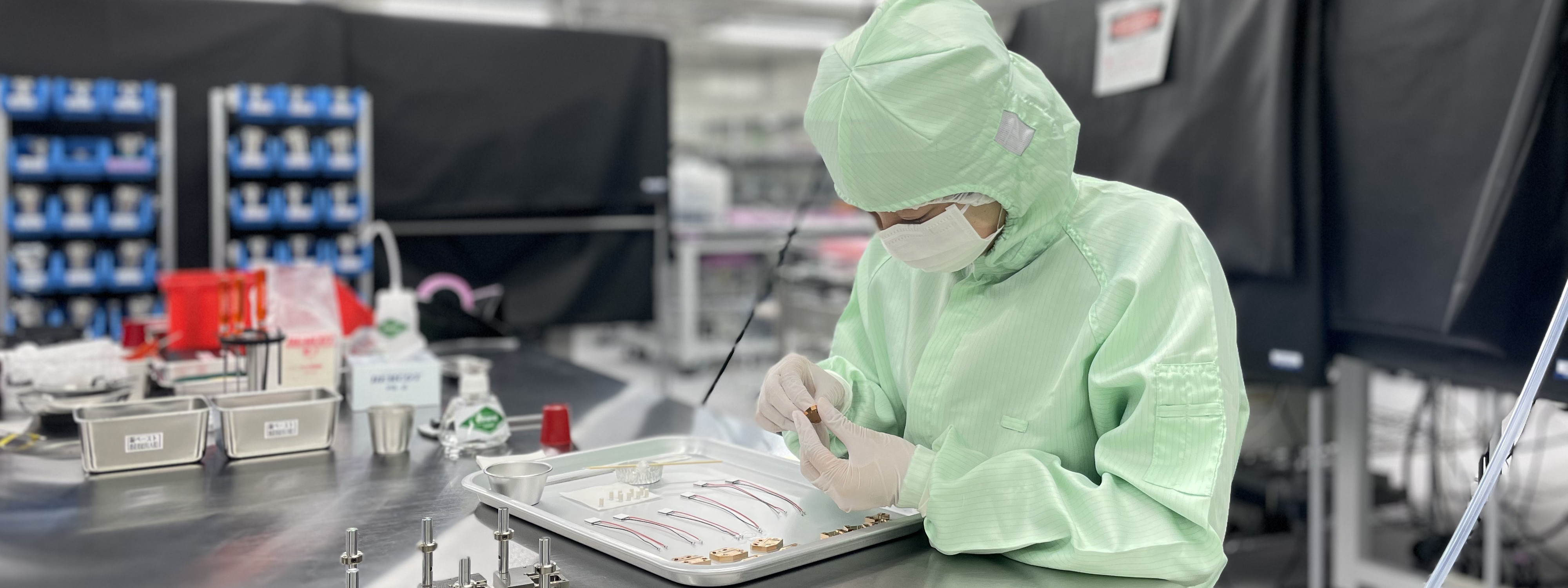 クリーンルーム内でレーザ部品を組み立て、装置へ取り付ける作業を行います -